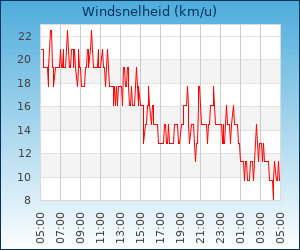 | Maximale windsnelheid | 27.4 km/u om 00:23 u |