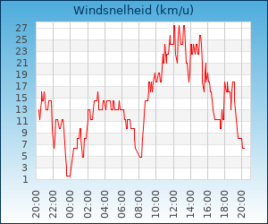 | Maximale windsnelheid | 46.7 km/u om 12:00 u |