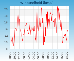 Windsnelheid en -richting | 16.5 km/u uit WZW |