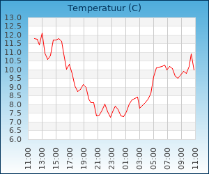 | Minimum temp. | 7.2 °C om 00:12 u |