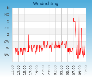 | Windsnelheid en -richting | 28.5 km/u uit NW |