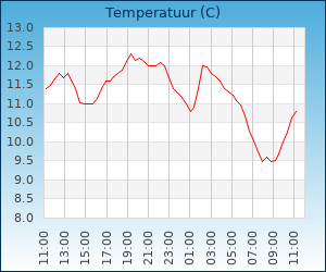 | Maximum temp. | 12.0 °C om 02:15 u |