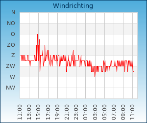 | Windsnelheid en -richting | 14.0 km/u uit ZW |