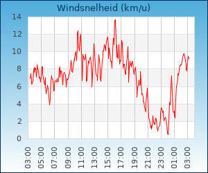 | Maximale windsnelheid | 49.7 km/u om 10:19 u |
