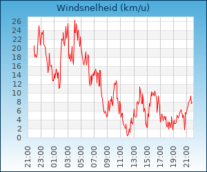 | Maximale windsnelheid | 46.1 km/u om 02:41 u |