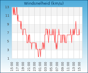 | Maximale windsnelheid | 17.6 km/u om 10:49 u |