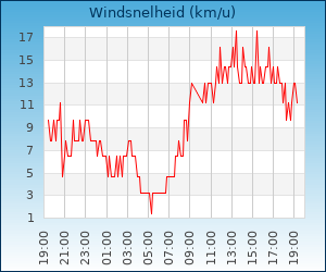 | Windsnelheid en -richting | 0.0 km/u uit ZO |