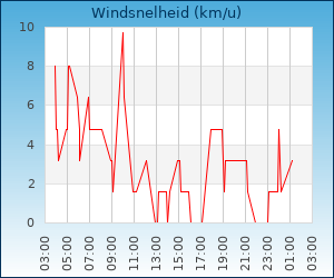 | Maximale windsnelheid | 4.8 km/u om 01:10 u |