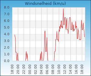 | Maximale windsnelheid | 16.2 km/u om 16:30 u |