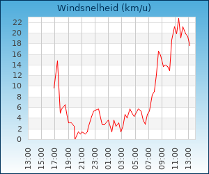 | Windsnelheid en -richting | 22.7 km/u uit ONO |