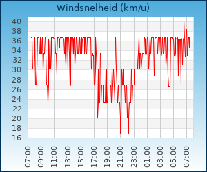 | Maximale windsnelheid | 30.6 km/u om 04:00 u |