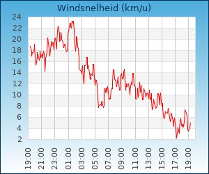 | Maximale windsnelheid | 35.4 km/u om 01:15 u |