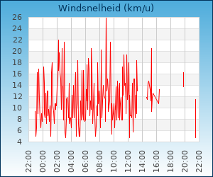 | Maximale windsnelheid | 25.9 km/u om 08:54 u |
