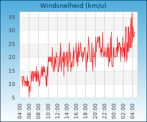 | Maximale windsnelheid | 31.3 km/u om 01:30 u |