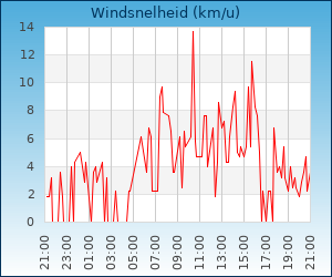 | Maximale windsnelheid | 13.7 km/u om 10:16 u |