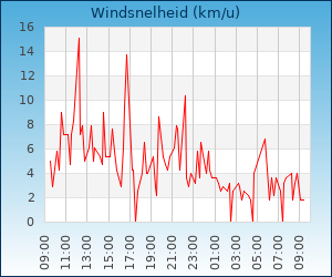 | Maximale windsnelheid | 6.8 km/u om 05:41 u |