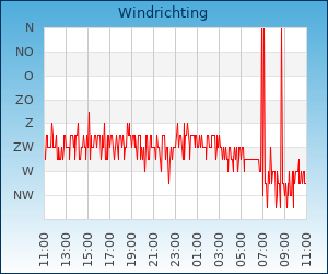 | Windsnelheid en -richting | 16.3 km/u uit NW |