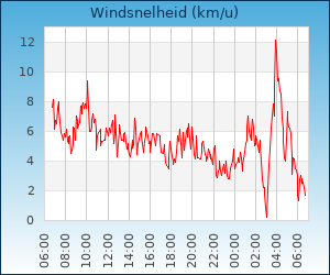 | Maximale windsnelheid | 27.7 km/u om 04:06 u |