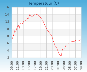 | Minimum temp. | 2.5 °C om 02:08 u |