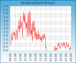 | Maximale windsnelheid | 5.4 km/u om 07:06 u |