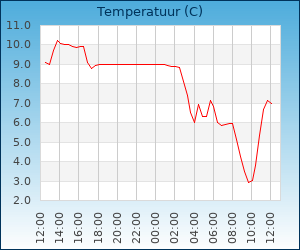 | Maximum temp. | 9.0 °C om 00:01 u |