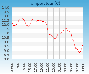 | Minimum temp. | 11.6 °C om 02:05 u |