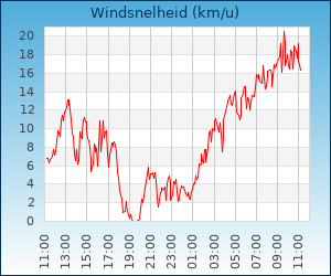 | Maximale windsnelheid | 18.5 km/u om 10:38 u |
