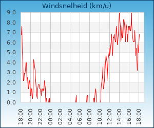 Windsnelheid en -richting | 6.5 km/u uit NW |