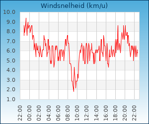 | Maximale windsnelheid | 30.6 km/u om 17:54 u |