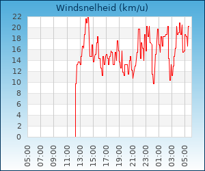 | Maximale windsnelheid | 22.0 km/u om 04:45 u |