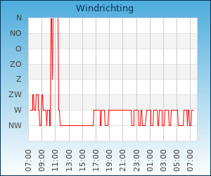 | Windsnelheid en -richting | 22.0 km/u uit NW |
