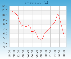 | Minimum temp. | 10.7 °C om 19:23 u |