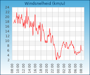 | Maximale windsnelheid | 11.9 km/u om 04:27 u |