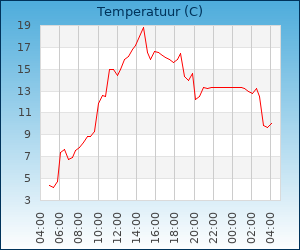 | Maximum temp. | 13.3 °C om 01:01 u |