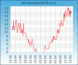 | Windsnelheid en -richting | 20.9 km/u uit ZZO |