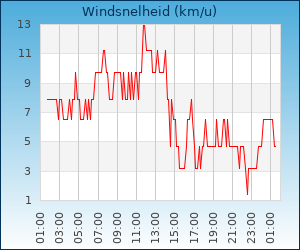 | Maximale windsnelheid | 25.9 km/u om 12:29 u |