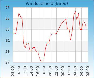 Windsnelheid en -richting | 35.9 km/u uit ZO |