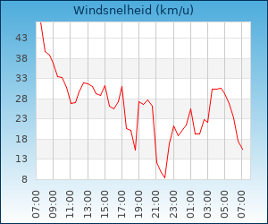 | Windsnelheid en -richting | 26.8 km/u uit ZZO |
