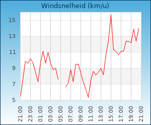 | Windsnelheid en -richting | 11.1 km/u uit ZO |