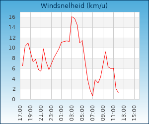 | Windsnelheid en -richting | 1.3 km/u uit ZO |