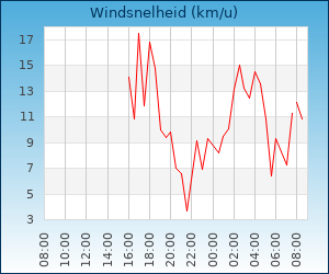 | Windsnelheid en -richting | 30.6 km/u uit NW |