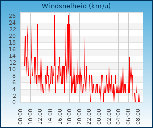 | Maximale windsnelheid | 13.7 km/u om 06:10 u |