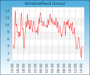 | Maximale windsnelheid | 30.6 km/u om 05:02 u |