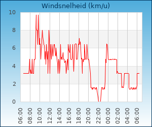 | Maximale windsnelheid | 9.7 km/u om 00:14 u |