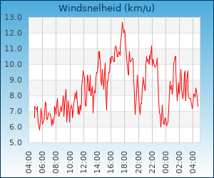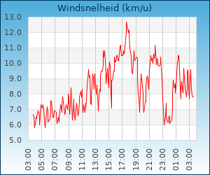 | Maximale windsnelheid | 16.9 km/u om 01:09 u |