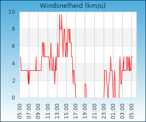 | Maximale windsnelheid | 9.7 km/u om 02:22 u |
