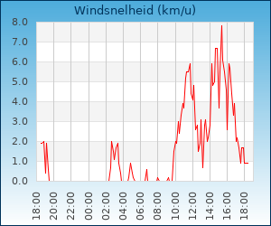 Windsnelheid en -richting | 3.3 km/u uit NW |