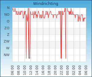 | Windsnelheid en -richting | 0.0 km/u uit NO |