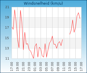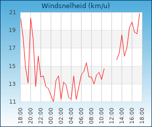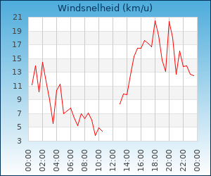 | Windsnelheid en -richting | 16.1 km/u uit NNO |