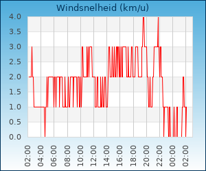 | Maximale windsnelheid | 4.0 km/u om 19:31 u |